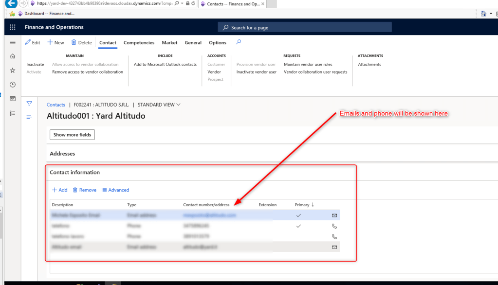 AX – D365FO – Vendors contacts informations (Emails, telephones, etc..)