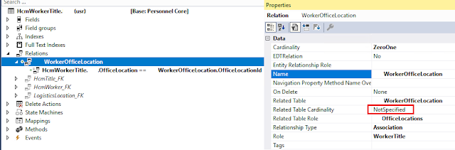 Data entity field WorkerEmergencyInfo.OfficeLocation is currently mapped to HcmWorkerTitle.OfficeLocation but it should be mapped to WorkerOfficeLocation.OfficeLocationId because HcmWorkerTitle.OfficeLocation is a foreign key field referencing WorkerOfficeLocation.OfficeLocationId.