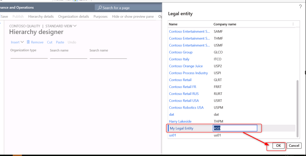 - Select Add in the Assigned hierarchies section. In the list, find and select the hierarchy that you just created, ‘Contoso Quality’.