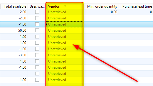 “Unretrieved” fields are newly created fields which AX 2012 AX by error treats badly. It may also appear if a form query does not contain a field in the datasource field list.