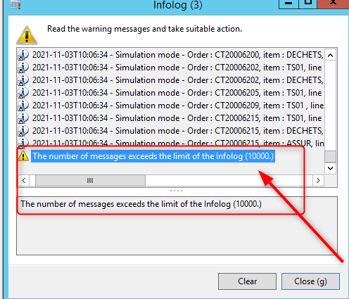 If you’re facing this warning message means you’re exeeding the limit of infolog message.