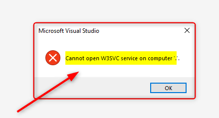 If you’re facing the error “Cannot open W3SVC service on computer” while opening Visual Studio you probably are trying to access without administrator permission.