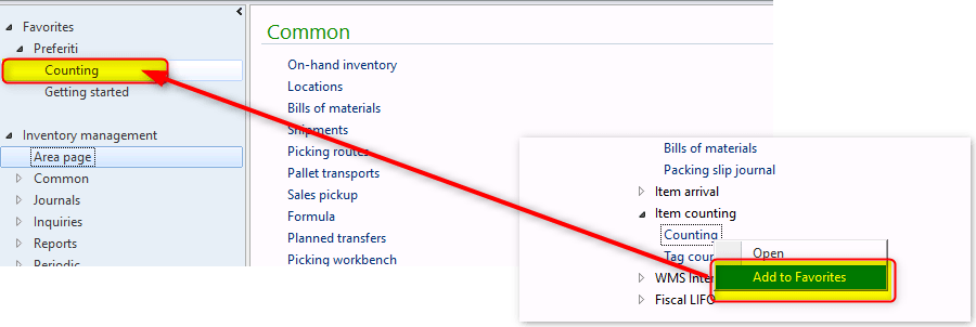 To add a menu item to Favourites just right-click on menu item, click on “Add to favourites” and you’ll find it in the Favourites Menu (like show below)
