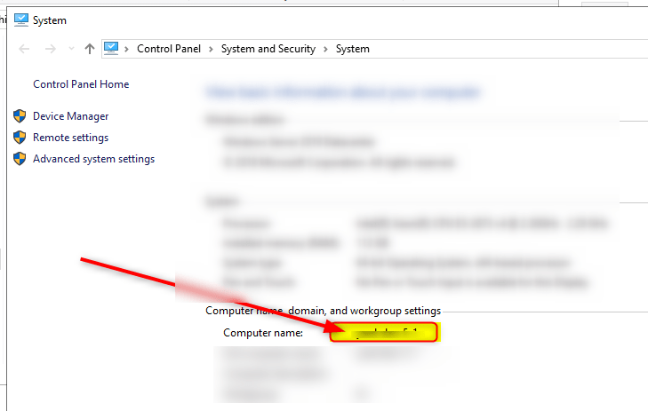 - In the system properties, find and make a note of the computer name (for example, AOS-950ed2c3e7b).