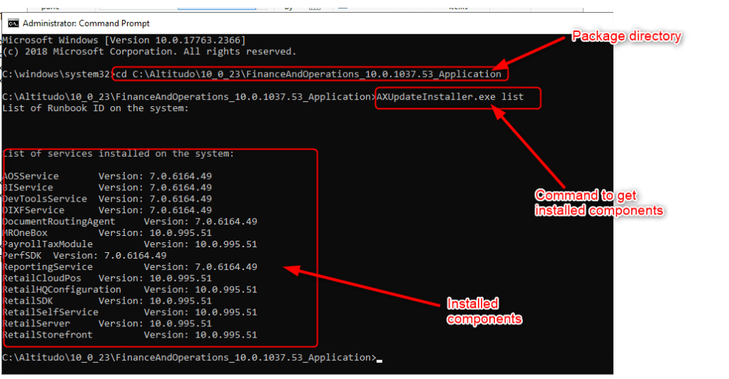 - Go to the extracted folder, and run the following command to see a list of all the components that are installed on the computer.