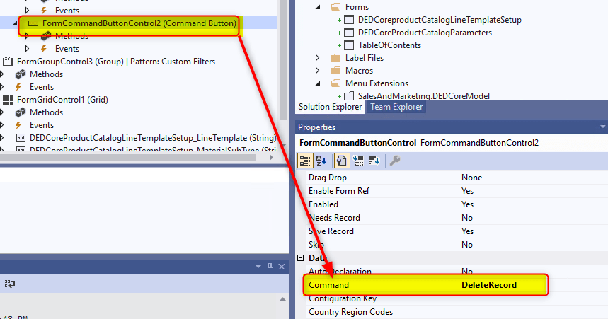 - Set “Delete record” on “Command Property”