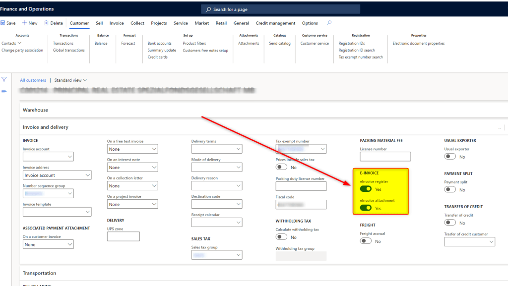 First be sure the customer has these 2 flags enabled in the E-INVOICE section :