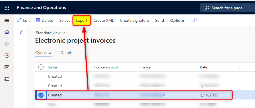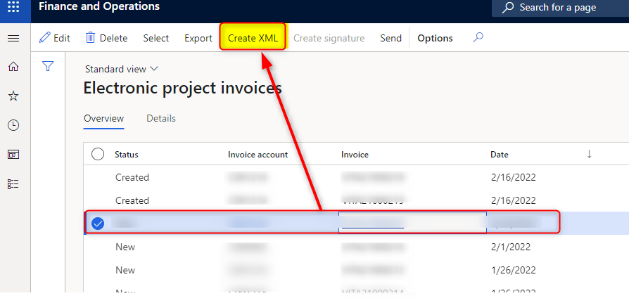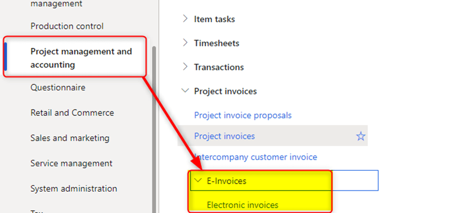 - Go to “Project management and accounting” > E-Invoices > Electronic invoices