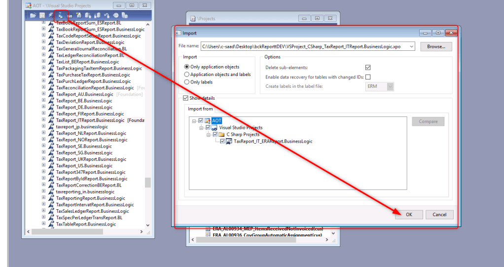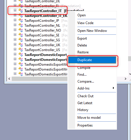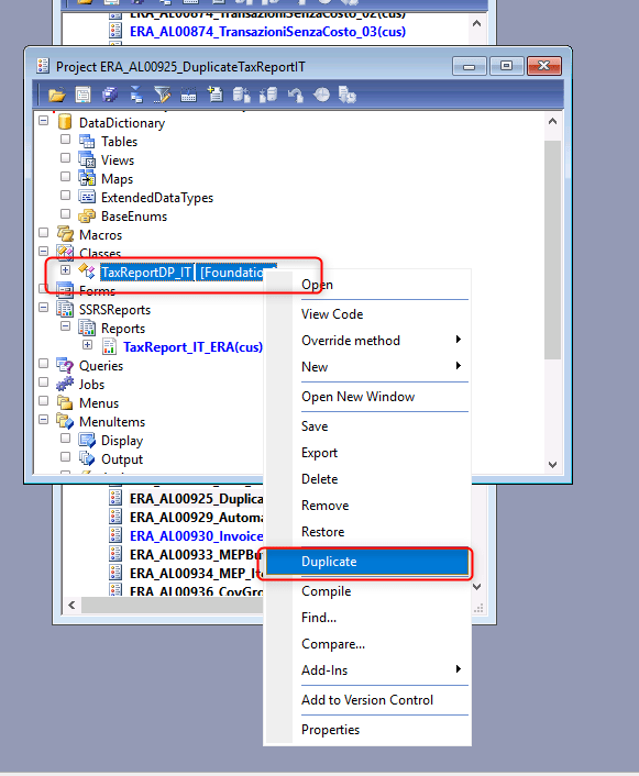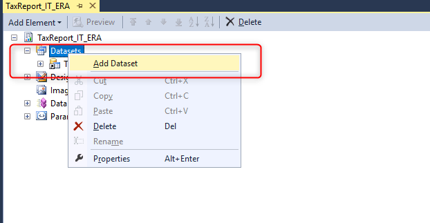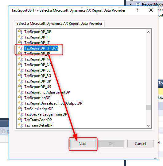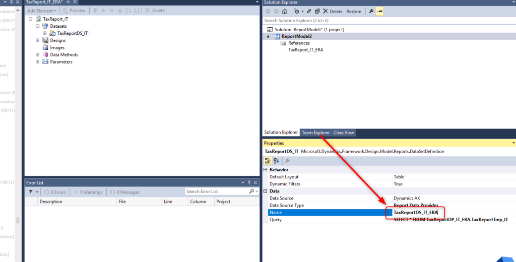 Return to your Visual studio project and modify the data mandatory property with the newly created TaxReport_IT_ERAReport.BusinessLogic