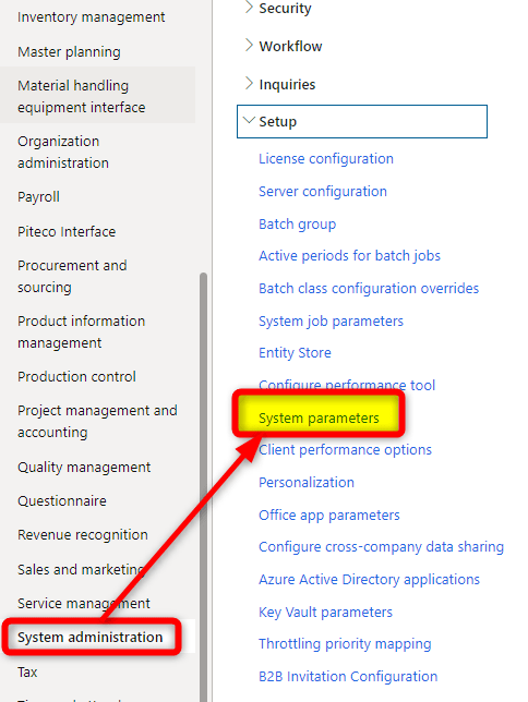 Select System administration > Setup > System parameters to open the System parameters page.