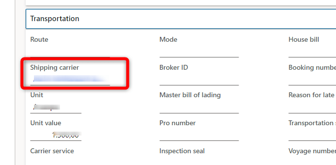 The form in question is the whsloadtable (All Loads) and the field is the Shipping Carrier