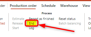 Dynamics AX provides a framework, which can be used to update production orders to a specific status. In the example, a production order is ended/finished.
